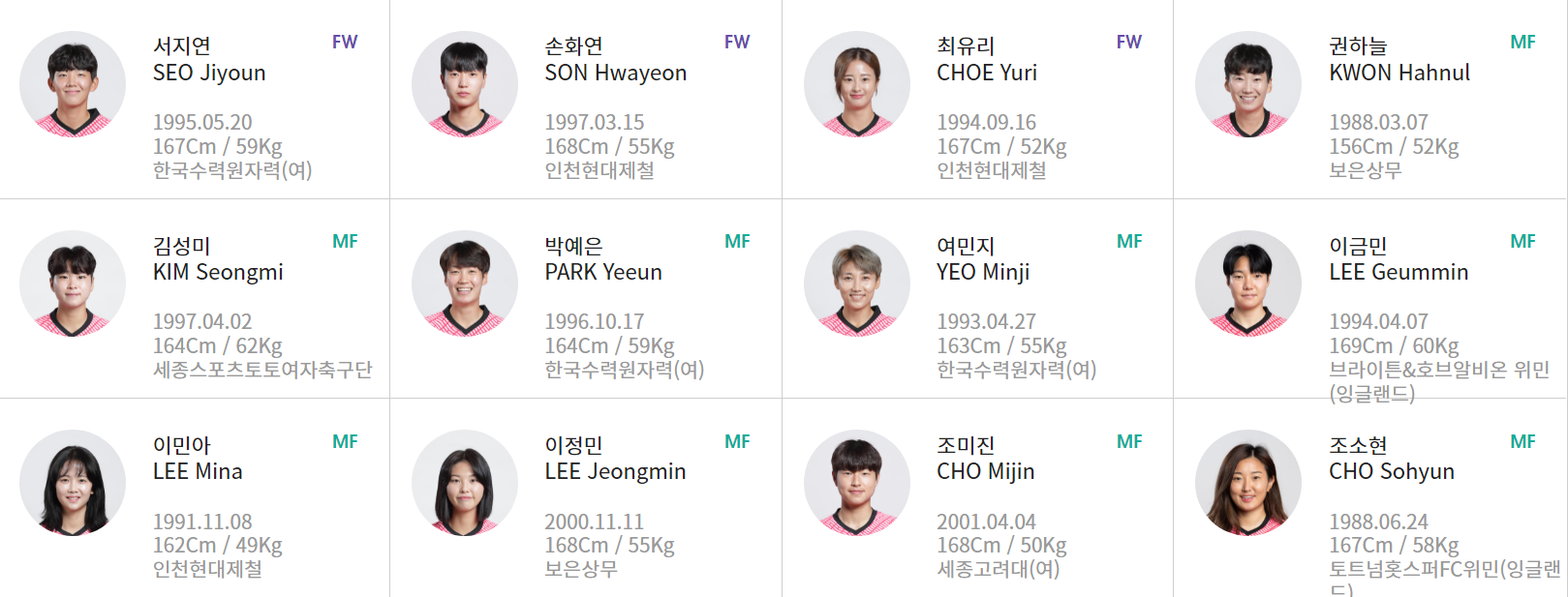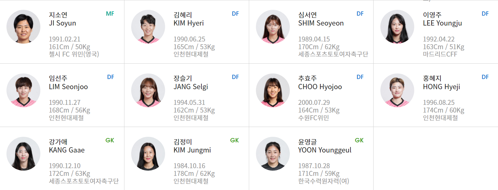 지소연 1991.02.21 / 161Cm / 50Kg / 첼시 FC 위민(영국)