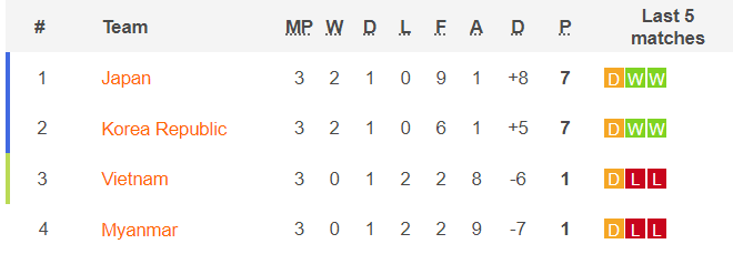 C조: 일본(13위), 한국(18위), 베트남(32위), 미얀마(47위)