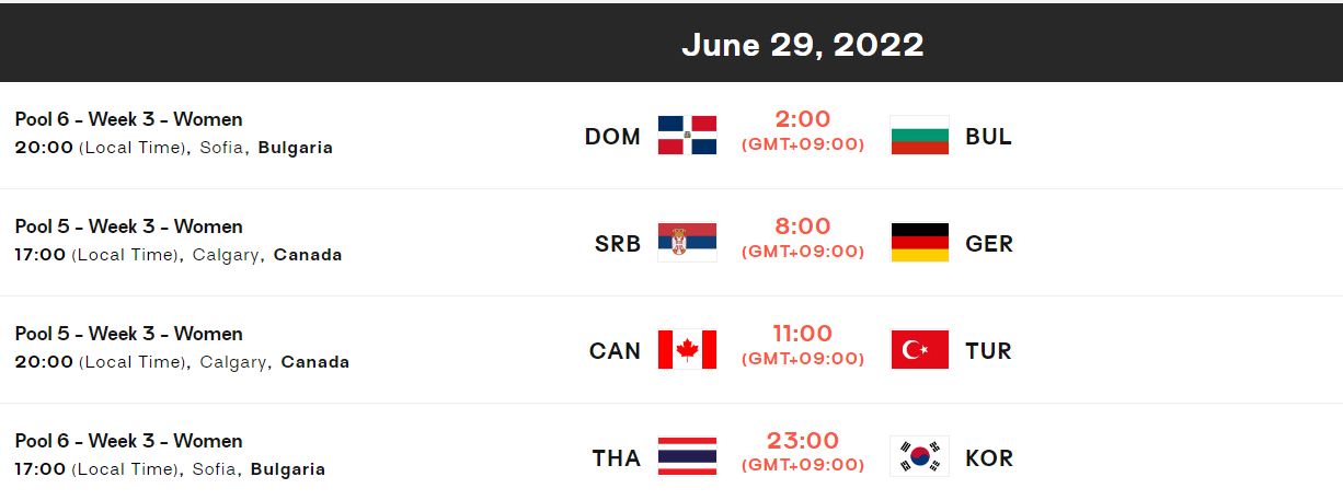 ※2022 VNL 여자배구 네이션스리그 일정 및 경기결과