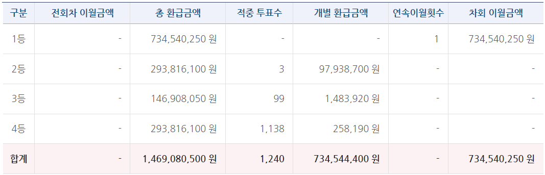 이정도 결과하면 1등 적중자가 나오지 않는 것이 정상 같습니다.