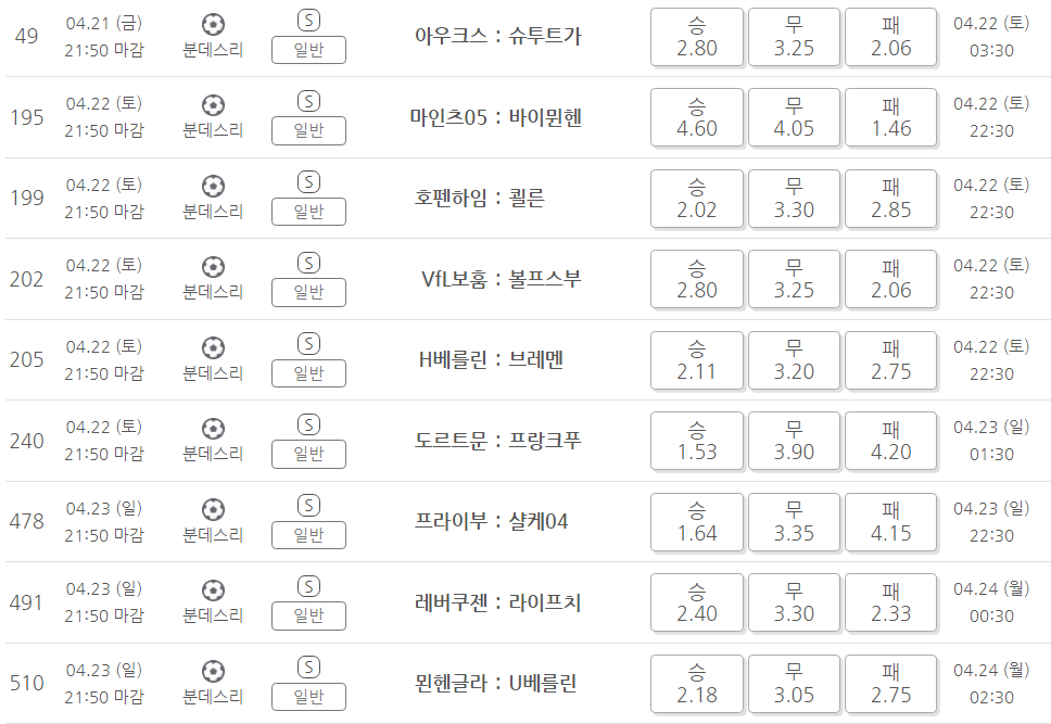 | 프로토 승부식 46회차 분데스리가 해외예상 |